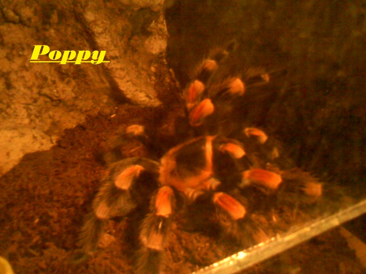 Délután a nagy várakozásomban bementem a kisállat kereskedésbe, ahol anno (2012. augusztusában) Martin vett nekem egy pókot. Életem vágya volt, hogy egyszer pókot tarthassak, és ő titokban meg is vette nekem. Leírni nem tudom, milyen érzés öntött el, mikor először megláttam náluk. Nem engedett be a szobájába, mert még elő akarta készíteni nekem, hogy mikor legelőször meglássam, nagyon meghatódjak. Gonosz voltam, és mikor ő kijött a szobájából beosontam, de persze fel sem tűnt nekem, mert azt mondta h rendet akar tenni odabent. Kijöttem mondtam neki, hogy nincs is kupi, ugyan mit szeretne rendbe tenni? Aztán lassan bevezetett, és megmutatta miért is volt ez a színjáték. Mikor először megláttam, nagyon megijedtem, hisz félek a pókoktól- pont ezért szerettem volna, hogy leküzdjem a félelmeim. Egyre közelebb merészkedtem hozzá, nagyon megtetszett. Gyönyörű színe volt, elég nagynak tűnt, és ijesztőnek. Le se vettem róla a tekintetem hosszú perceken keresztül néztem őt, egy mukkanás nélkül. Már első ránézésre beleszerettem. Mikor végre feleszméltem, rápillantottam Martinra, aki épp engem nézett, (pontosan emlékszem a szituációra) majd megszólalt: Ő a tiéd. A pillanatot mikor ezt a mondatot felfogtam sosem felejtem el. Egyik pillanatról a másikra, könny gyűlt a szemembe, köpni-nyelni nem tudtam, de még egy köszönömöt sem tudtam magamra erőltetni. A kezembe temettem az arcomat. Hosszú perceken keresztül, csak a könnyeimmel küszködtem, persze ezek örömkönnyek voltak. Nem nagyon mertem elhinni. Folyamatos kérdésekkel támadtam le: honnan van? mikor vetted? ő tényleg az enyém? de egy ilyen nagyon sokba kerül, miért vetted meg? hova fogod tenni? milyen nemű? és még sorolhatnám... Minden kérdésemre válaszolt, de a legjobbat a legvégére hagyta. Azt mondta, ő az enyém, és még egy ideig náluk lesz, de aztán segít hazahozni. Újra sírva fakadtam, nem tudtam elhinni, hogy ő tényleg az enyém, és tényleg nálunk fog lakni. A félelem is belém szállt, hisz nem tudtam, mit fogok kezdeni egy ekkora pókkal- azért valljuk be, elég nagy állat. Nem tudtam elképzelni magam, ahogy enni, vagy éppen inni adok neki. Martin nem is erőltette a dolgot, csak örült annak, hogy én mennyire megörültem neki. Nevet is adtam neki, Poppy lett. Azt mondta, még nem ivarérett, így még elég nehéz megállapítani a nemét, de szerinte nőstény. Aznap nem maradtam fent náluk sokat, de persze megtudakoltam a fontos dolgokat a pókokkal kapcsolatban. Arra is tisztán emlékszem, mikor hazaértem, egyből rákerestem a netem: Brachypelma smithi- a legkedveltebb pók a világon.